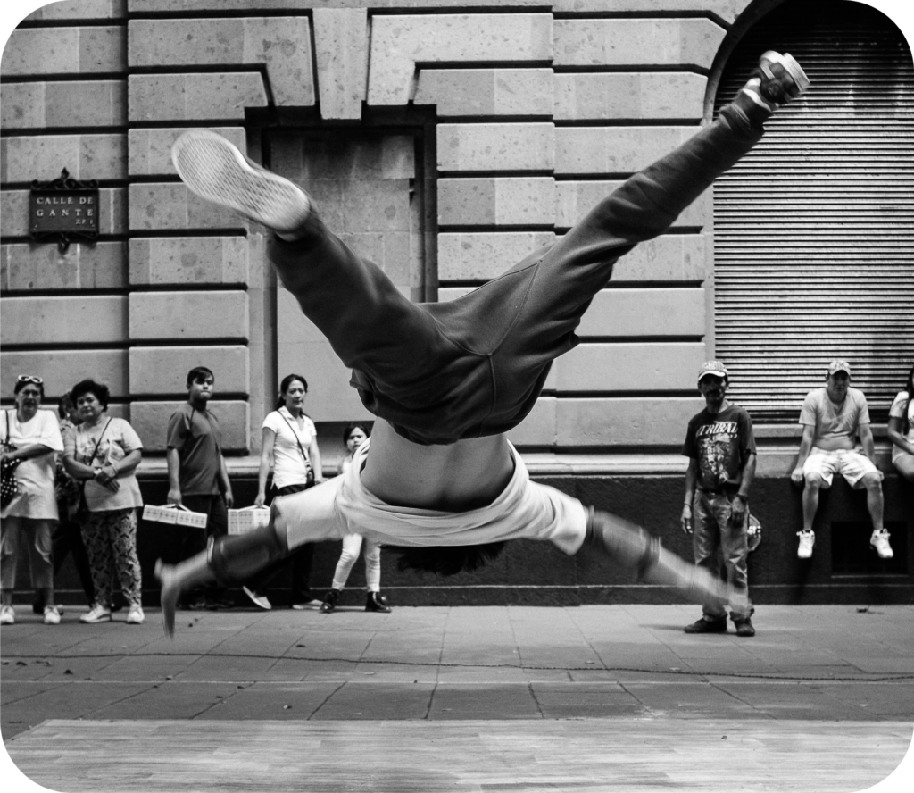 Gracias a nuestra alianza estratégica con Infinitos Crew, promovemos el desarrollo artístico y competitivo del break dance y la cultura hip hop. Impulsamos procesos de formación, eventos urbanos y espacios de expresión juvenil que fortalecen el arte callejero como una herramienta de transformación social.